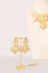 A graceful fusion of tradition and modern artistry, this layered pearl necklace features intricately carved gold panels accented with pastel beads. Handcrafted and 22k gold plated to capture timeless elegance with every detail.